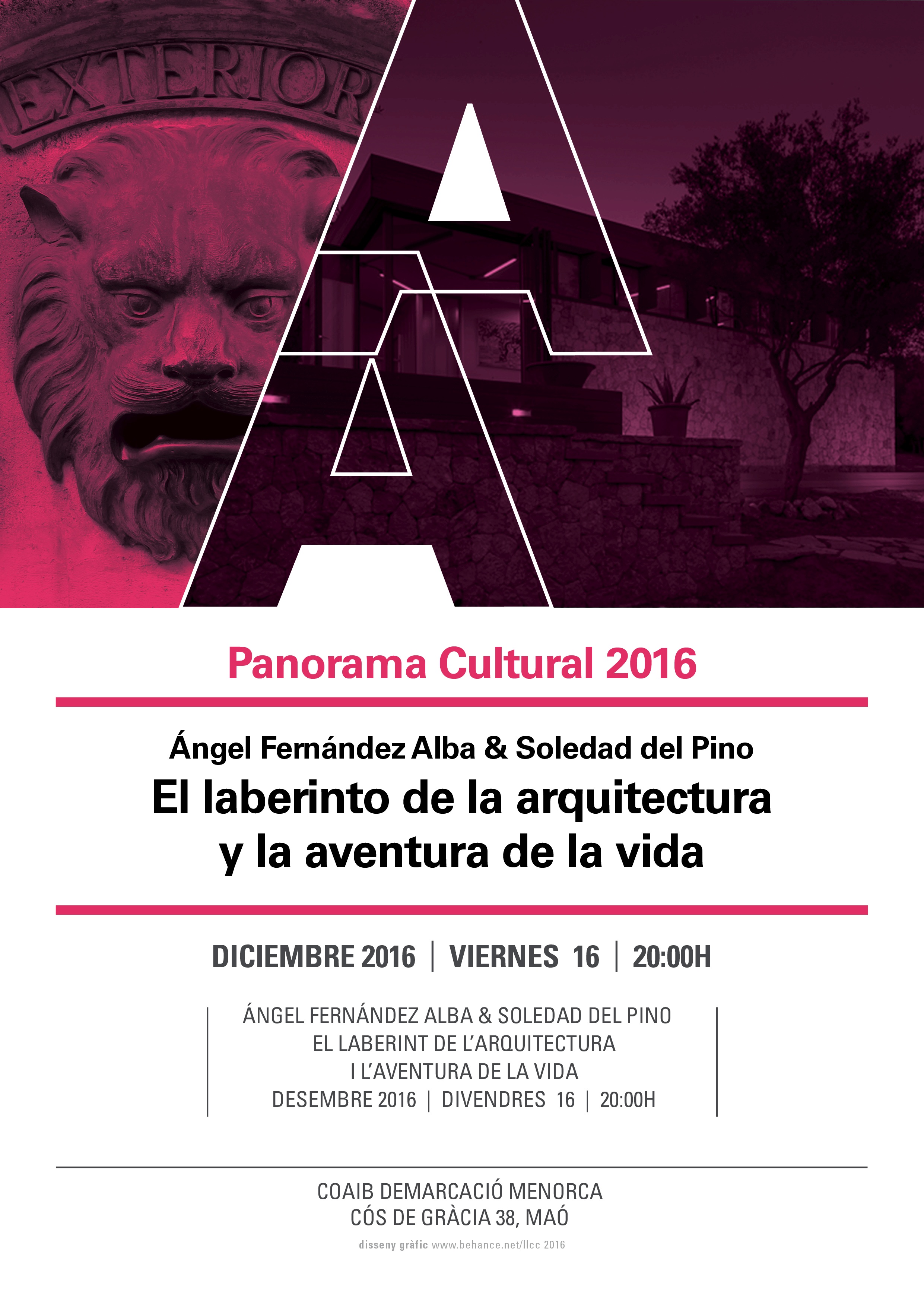 Panorama Cultura 2016 "Exterior". Conferencia: Angel Fernandez y Soledad del Pino: El laberinto de la arquitectura y la aventura de la vida. Maó, 16/12/16
