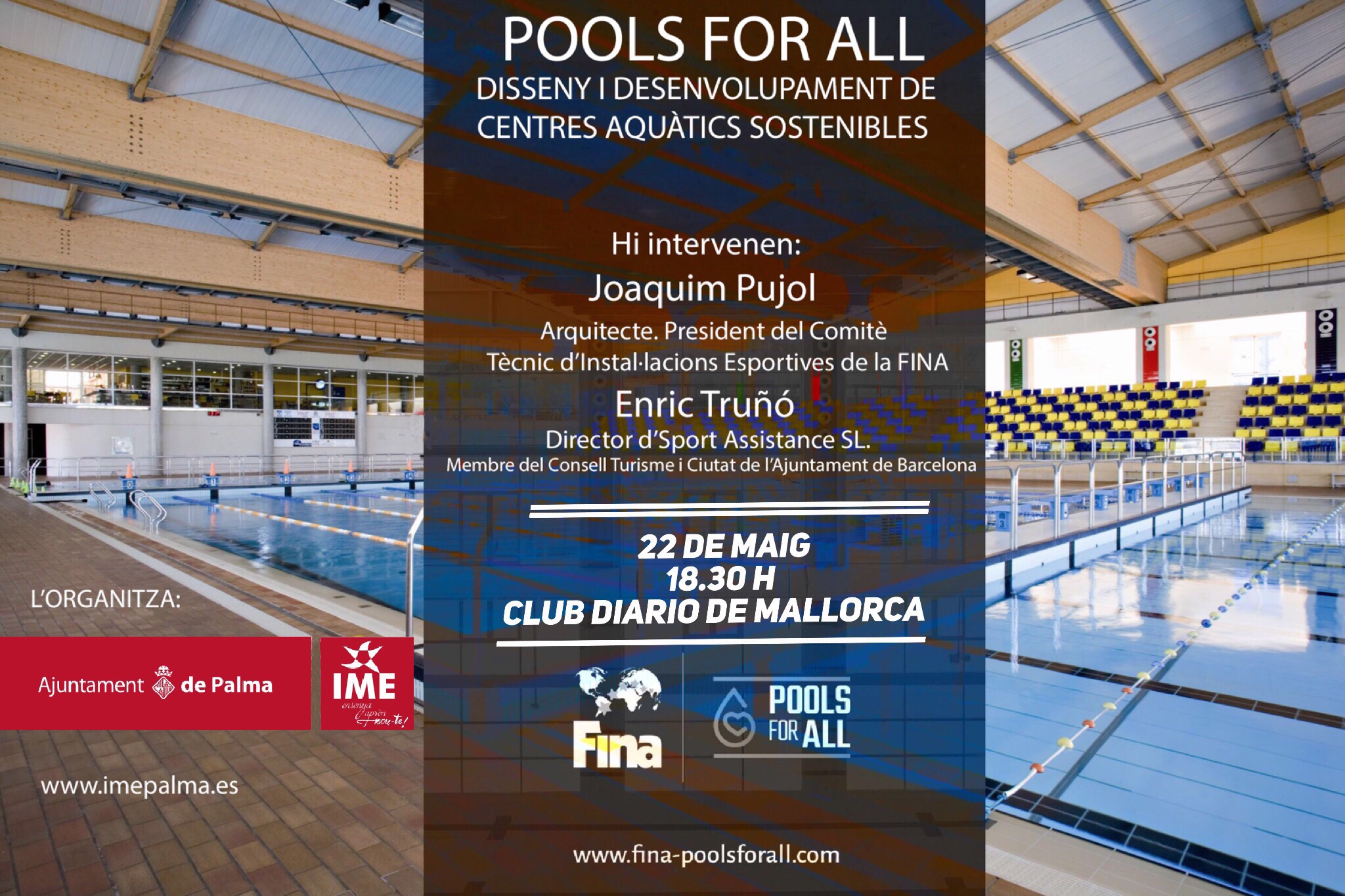 L’Institut Municipal de l’Esport, del Ayuntamiento de Palma, ha organizado una jornada en relación al diseño y el desarrollo de centros acuáticos sostenibles, que tendrá lugar al Club Diario de Mallorca el próximo día 22 de mayo. La conferencia, que irá a cargo del arquitecto Quim Pujol y de Enric Truñó, pretende hacer una mirada al futuro con una apuesta por la innovación, la sostenibilidad y la eficiencia de recursos a los centros acuáticos.